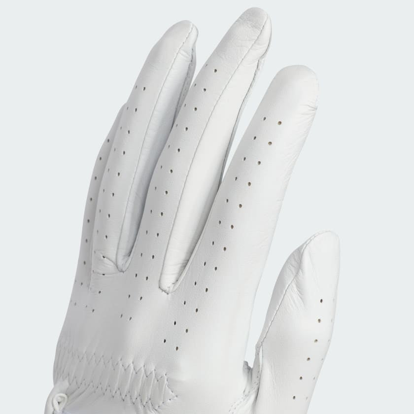 Step up your game with this pro-style golf glove from adidas. From the supple feel of sheep leather to ventilation in the fingers and thumb, this glove has all the features you need for a confident grip on your club. An adjustable strap lets you find the right fit.