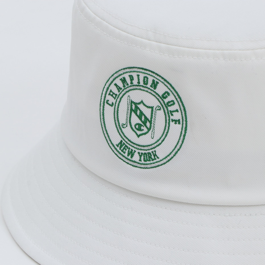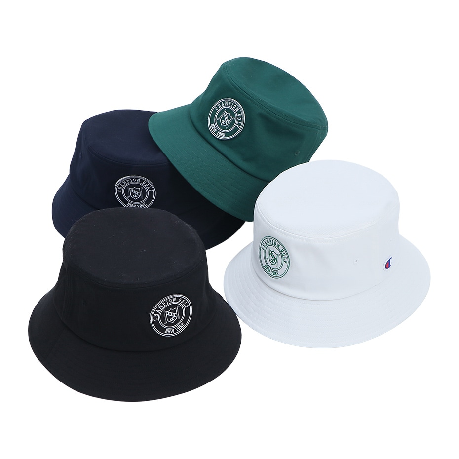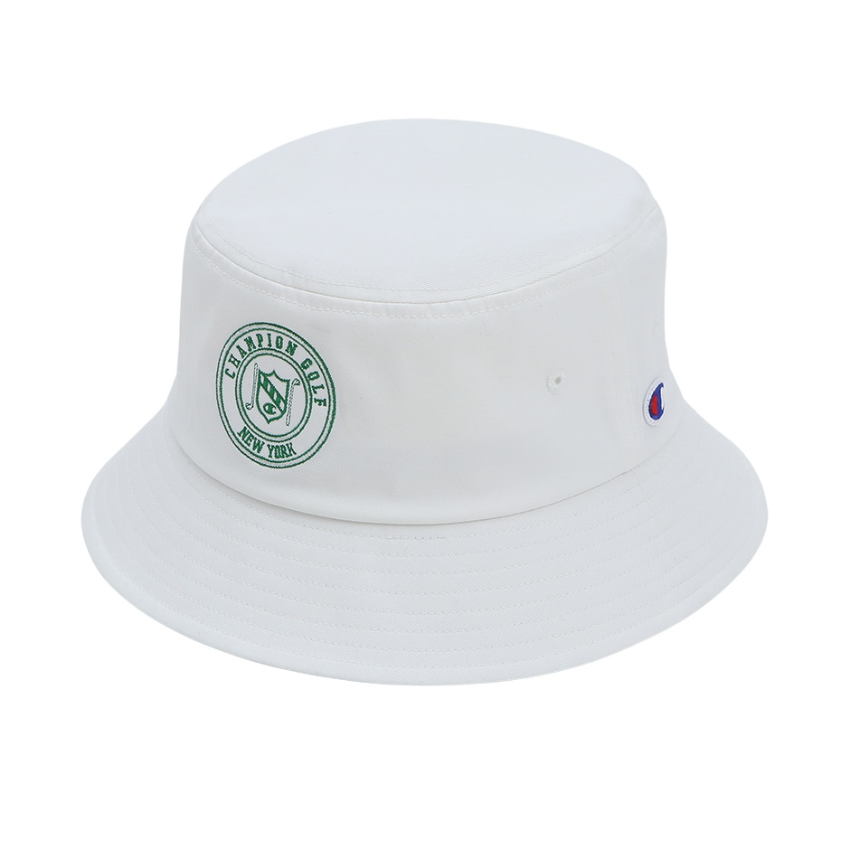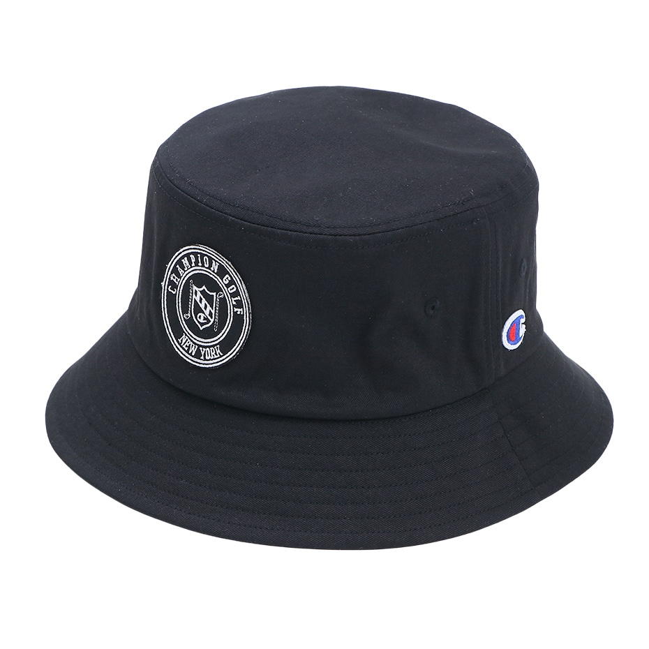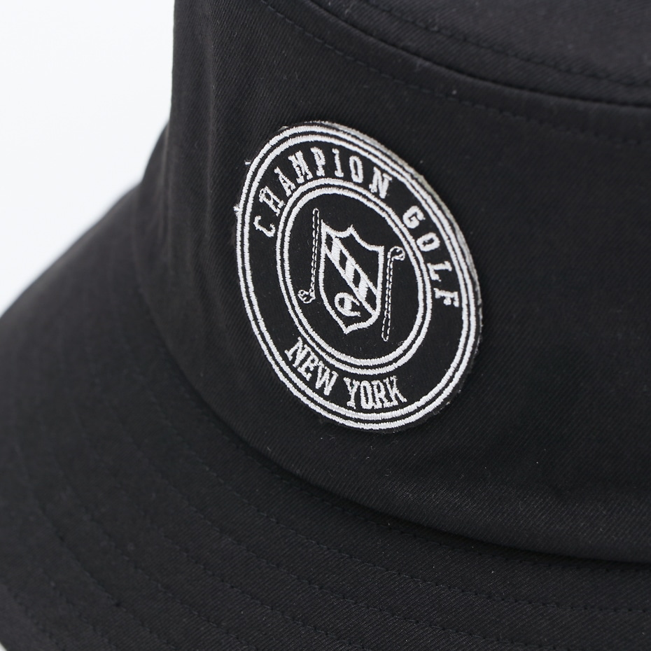 This hat is made of nylon material containing polyurethane. The inner side, where your forehead rests, is made of a material that has excellent sweat absorption and quick drying properties. The front has the C logo, ``CHAMPION GOLF'', ``NEW YORK'' and an emblem-like patch with a layout of golf club designs, and the back has the C logo embroidered on it. Comes with an adjuster on the inside that allows you to adjust the size. Available from 57cm to 59cm.